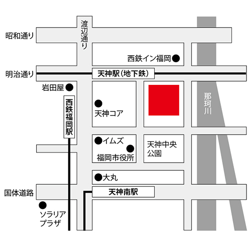 地下鉄空港線 天神駅(16番出口) 徒歩3分 地下鉄七隈線 天神南口(5番出口) 徒歩3分 西鉄大牟田線 西鉄福岡駅 徒歩10分