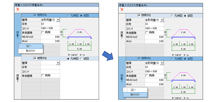 入力した荷重は新規欄にコピー&ペーストが可能です。