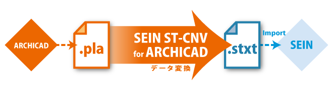 SEIN ST-CNV for ARCHICADは、ARCHICAD(グラフィソフト株式会社)のデータを、SEIN La CREAのテキストファイルへコンバートするプログラムです。