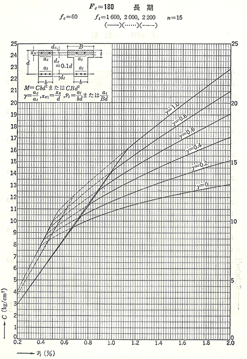【図20】手計算時代に多用された計算用図表例(図は鉄筋量算出表:日本建築学会)