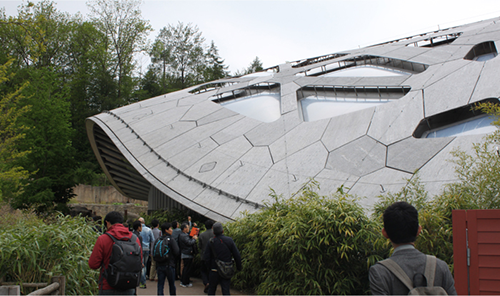 設計コンペを経て2014年に竣工したチューリッヒ動物園の象舎1は、象と来訪者の双方がゆったりと過ごせるよう、既存建物の6倍の大きさにもなる6800m²の空間を木質グリッドシェルによるドーム屋根で覆っている。