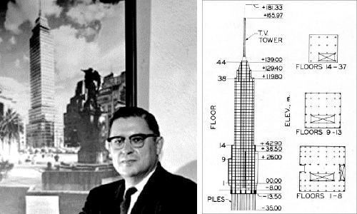 【図3】左:N.M.Newmark(1910-1981年) 右:ラテノアメリカーナ タワーの構造